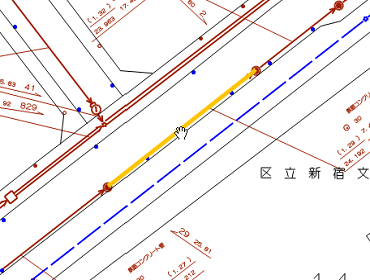 【取付管表示切替】ボタンにより取付管表示状態になっている場合、 台帳図上に表示されます。 |